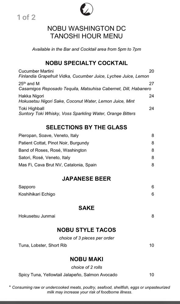 Welcome to Nobu Washington D.C, an oasis of upscale Japanese cuisine set in a chic, intimate environment. Known for its exquisite blend of traditional and contemporary flavors, the menu showcases a dazzling array of offerings, each crafted with precision and finesse. Highlights include the flaming wagyu, a meltingly tender masterpiece, and the black cod—a signature dish revered for its rich, buttery flavor.